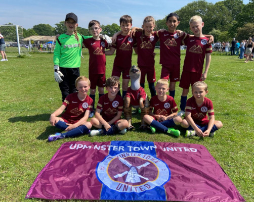 Upminster Town United youth Black U10 football players celebrating a trophy win